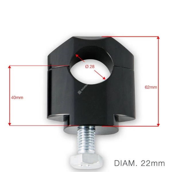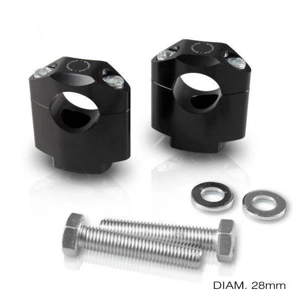 Gli attacchi manubrio, o risers, sono realizzati in ERGAL anodizzato nero. Sono disponibili in 2 versioni: UNIVERSALE (per le moto predisposte con attacco manubrio originale removibile – sezione 28mm) e UNIVERSALE22 (per le moto con attacco manubrio originale removibile ma con sezione dell’attacco da 22mm).