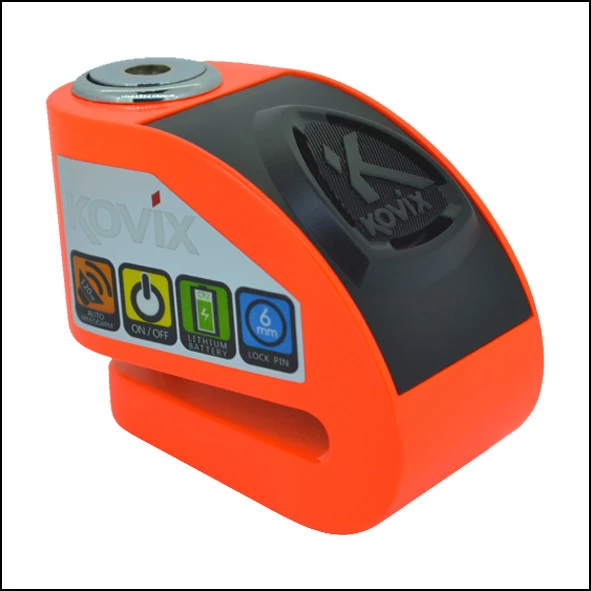 Descrizione prodotto Bloccadisco con allarme Kovix KD6 perno 6 mm arancio fluo