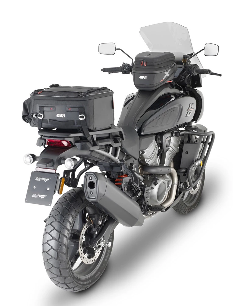 Borsa cargo roll-top da sella estensibile da 25 a 35 litri e trasformabile in zaino, presenta delle cinghie di fissaggio, una tasca superiore esterna indipendente dal vano principale e un sistema di chiusura a rigiro per garantire l’impermeabilità. Di serie un kit di extra carico composto da due cinghie removibili con ganci alle estremità, da agganciare a 4 passanti in Hypalon posizionati sulla borsa, le maniglie laterali per il trasporto a mano, gli spallacci estraibili per la trasformazione in zaino e dei fori di scolo dell’acqua/umidità sul fondo della borsa. Risulta utilizzabile su top case con passacinghia, portapacchi e selle passeggero.
