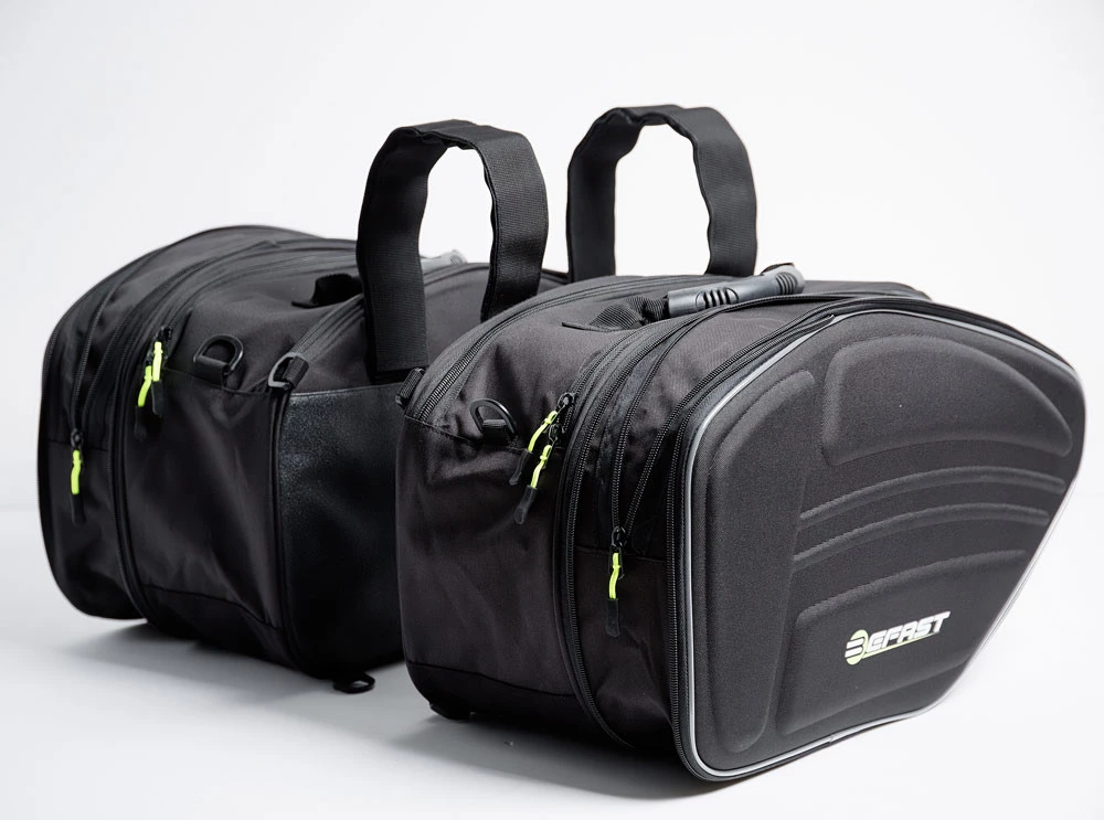 Equipaggia la tua moto con una coppia di borse laterali partiche e di qualità, le SB900 di Befast sono pronte ad accompagnarti in ogni tuo viaggio offrendoti la capienza necessaria per riporre tutto quello che ti serve in maniera ordinata e sicura. Realizzate in poliestere e PVC, con rinforzi interni rigidi, hanno una capienza di 40 litri ciascuna e dispongono di Passanti regolabili con velcro, cinghie di fissaggio al telaio e tracolla per il trasporto a mano una volta scesi dalla moto. La cover antipioggia ne consente l’utilizzo anche in condizioni meteo sfavorevoli.