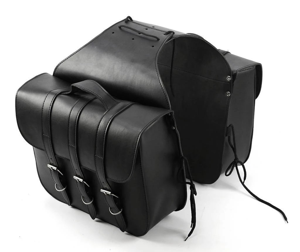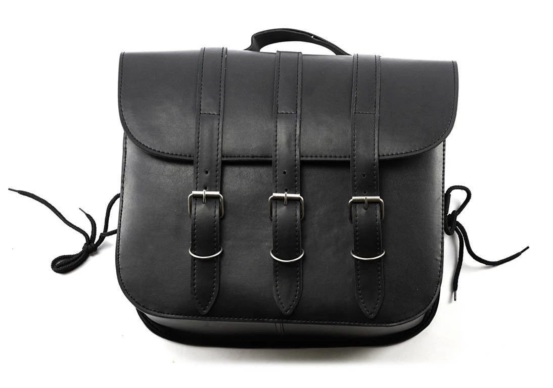 Coppia borse laterali in pelle sintetica dallo stile Custom e/o Cafe Racer. Dal Design alla moda le borse Trinity di Carburo dispongono di tripla cinghia e fibbie cromate molto resistenti e sistema di aggancio borse con lacci regolabili costruiti per un montaggio perfetto su tutte le moto