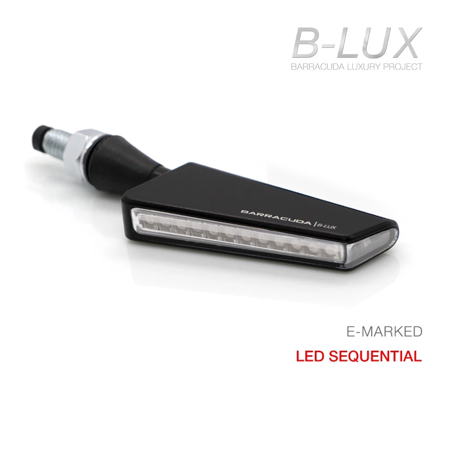 Le SQ-LED sono indicatori universali omologati realizzati in alluminio che utilizzano tecnologia LED sequenziale e rappresentano il top di gamma. Fanno parte della collezione Barracuda luxury project chiamata B-lux. Le SQ-LED sono caratterizzate da linee speciali e raffinate con finiture eleganti con un design futuristico, con dimensioni ridotte. Sono offerte in 6 colorazioni: NERO, ROSSO, ARGENTO, ORO, VERDE e BLU.