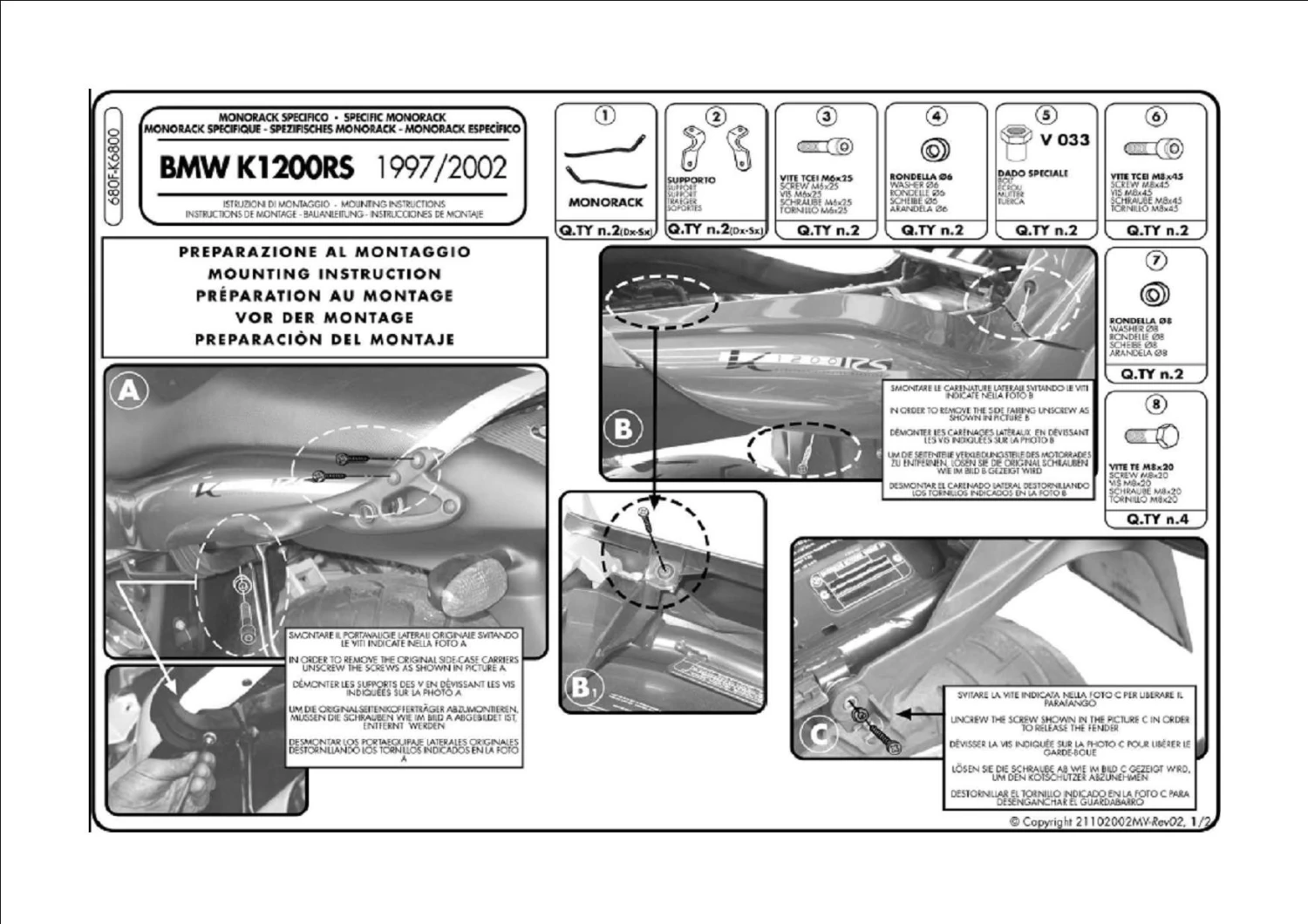 Attacco posteriore K6800 specifico per bauletto MONOKEY® o MONOLOCK® per BMW K1200 RS (00>04)