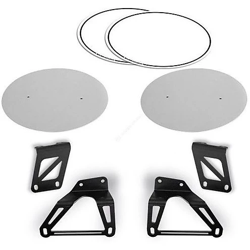 La tabella portanumero è venduta in kit composto da: 2 tabelle (destra e sinistra), 2 staffe per il montaggio e due adesivi bianchi.