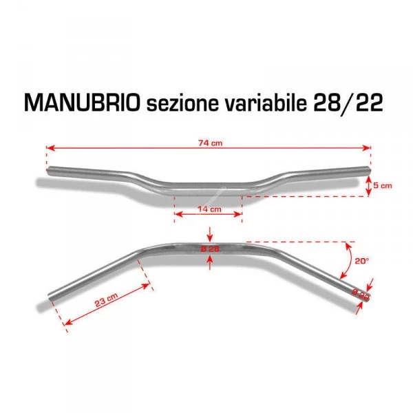 Descrizione prodotto Manubrio a sezione variabile 28/22mm Barracuda Argento