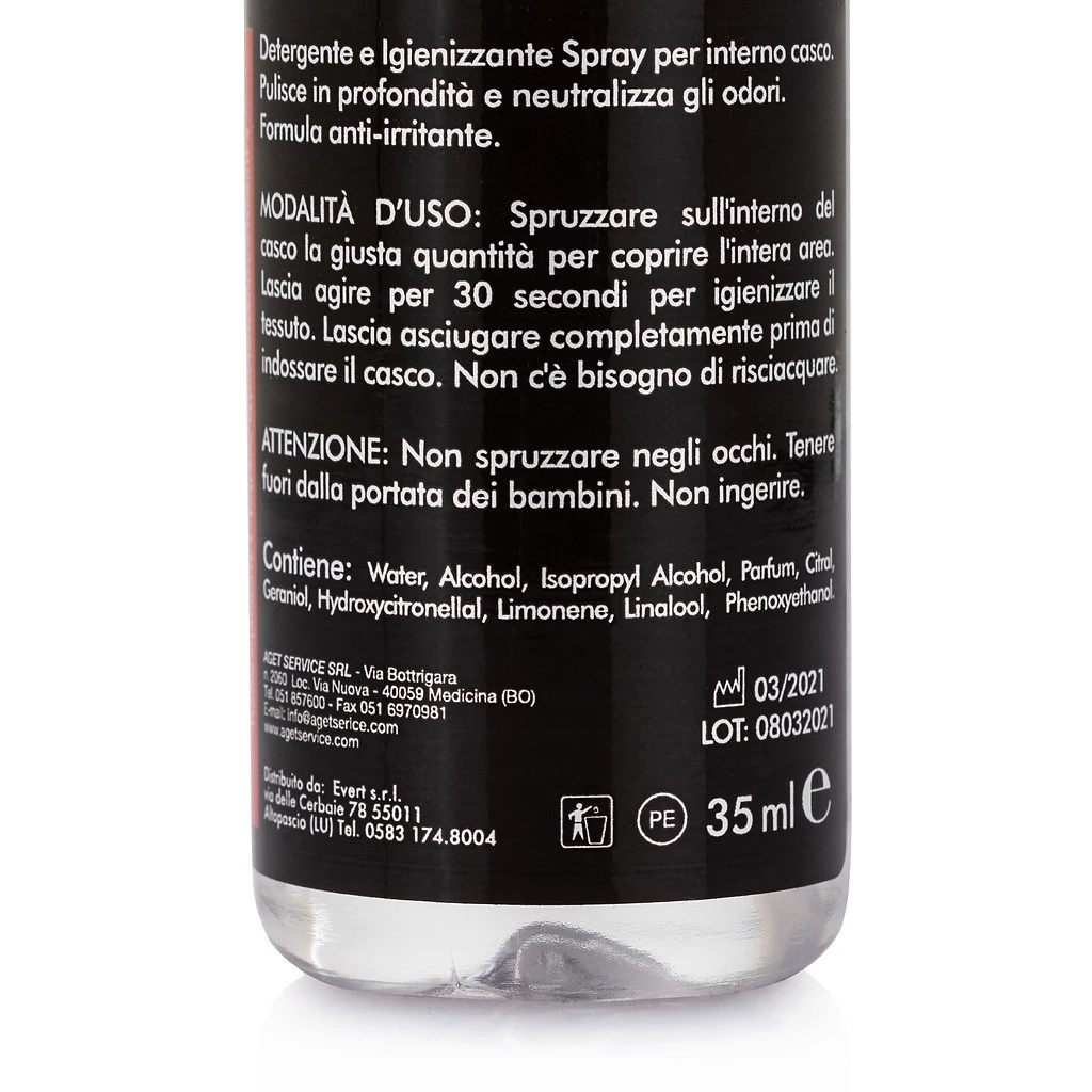 Spray igienizzante antibatterico specifico per la pulizia provonda degli interni del casco, formula non irritante che neutralizza gli ordori