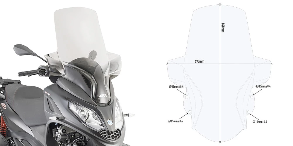 Descrizione prodotto Parabrezza alto Givi D5614ST PIAGGIO MP3 HPE 400 (17-20)