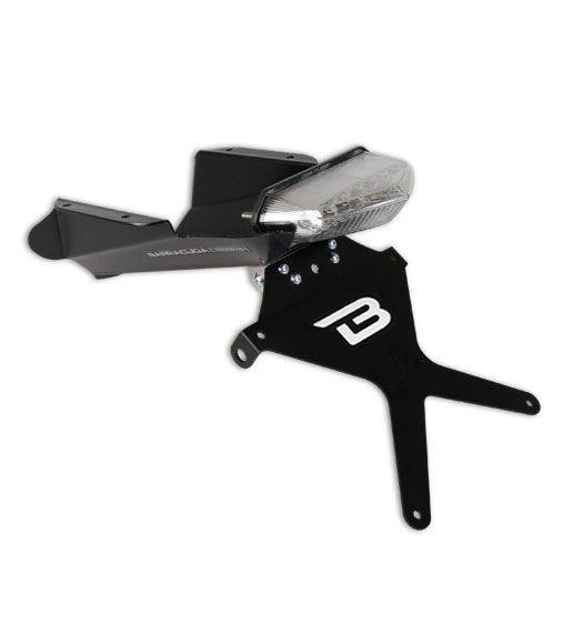 Il kit e’ composto da un piccolo SOTTOCODONE in alluminio anodizzato nero, è completo di faro a led omologato. Completa il kit il portatarga reclinabile in alluminio anodizzato nero con snodo in acciaio per garantirne la robustezza. NON COMPATIBILE CON IL MONOPOSTO ORIGINALE, NON COMPATIBILE CON LA VERSIONE ABS. Il montaggio non prevede modifiche alle parti originali per il montaggio. Non sono compatibili frecce e luce targa originali. N. B. Luce targa e frecce vanno acquistate separatamente.