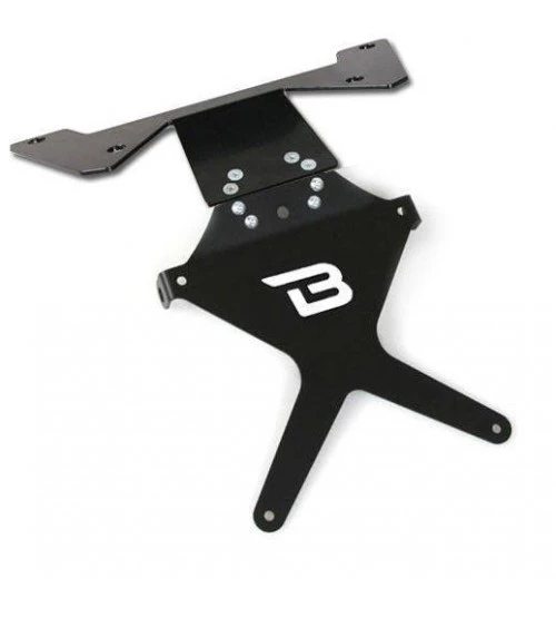 Il portatarga reclinabile e’ realizzato in alluminio anodizzato nero + snodo in acciaio che ne garantisce la robustezza alle vibrazioni. Il kit e’ specifico per la moto ed e’ comprensivo di staffa di fissaggio e di bulloneria. Il montaggio non prevede modifiche alle parti originali per il montaggio. Non sono compatibili frecce e luce targa originali. N.B. Luce targa e frecce vanno acquistate separatamente.