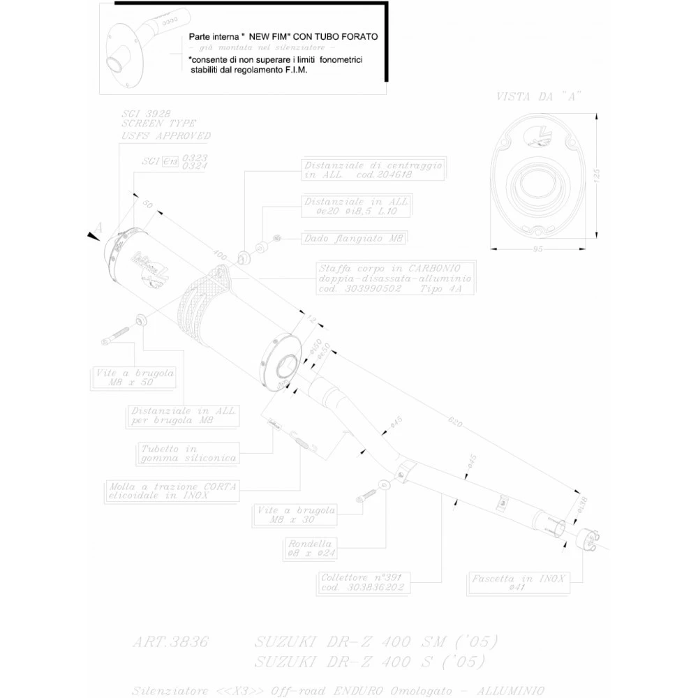 Dispositivo di scarico OMOLOGATO secondo la direttiva EC 97/24 cap.9 relativa al rumore.